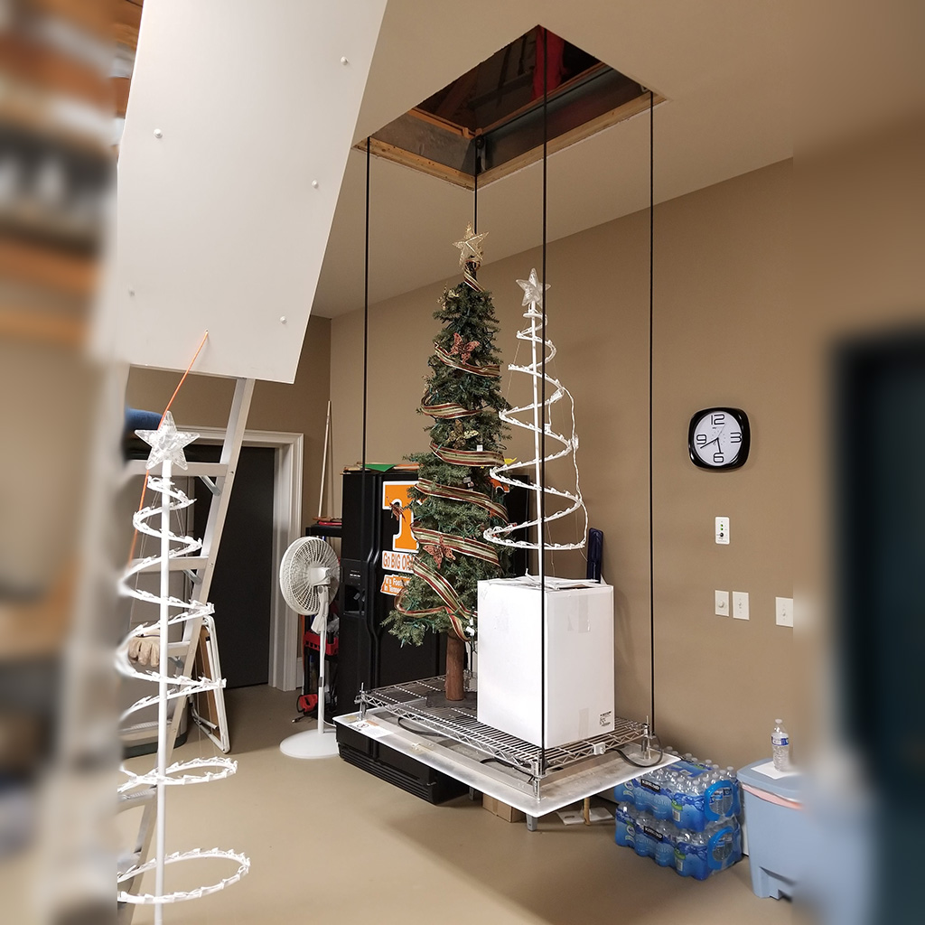 The LiveWell Attic Lift is a motorized platform that transports items between your living space and attic with the push of a button. It installs between your attic floor joists and works seamlessly with your existing attic opening — no messy remodeling required.